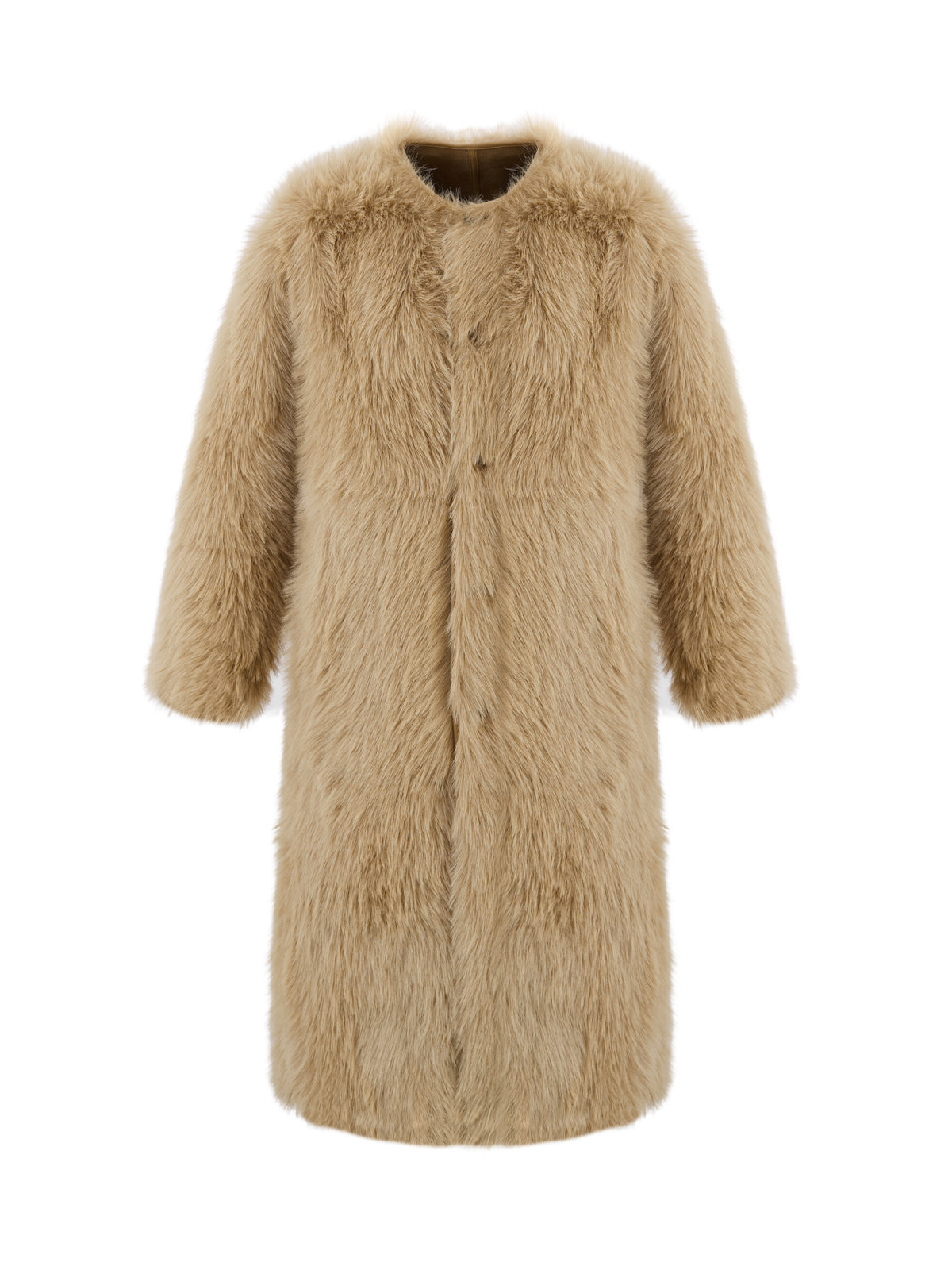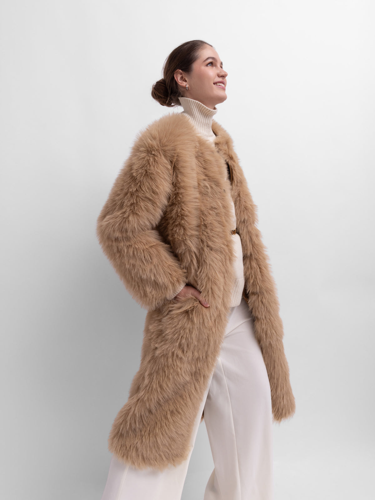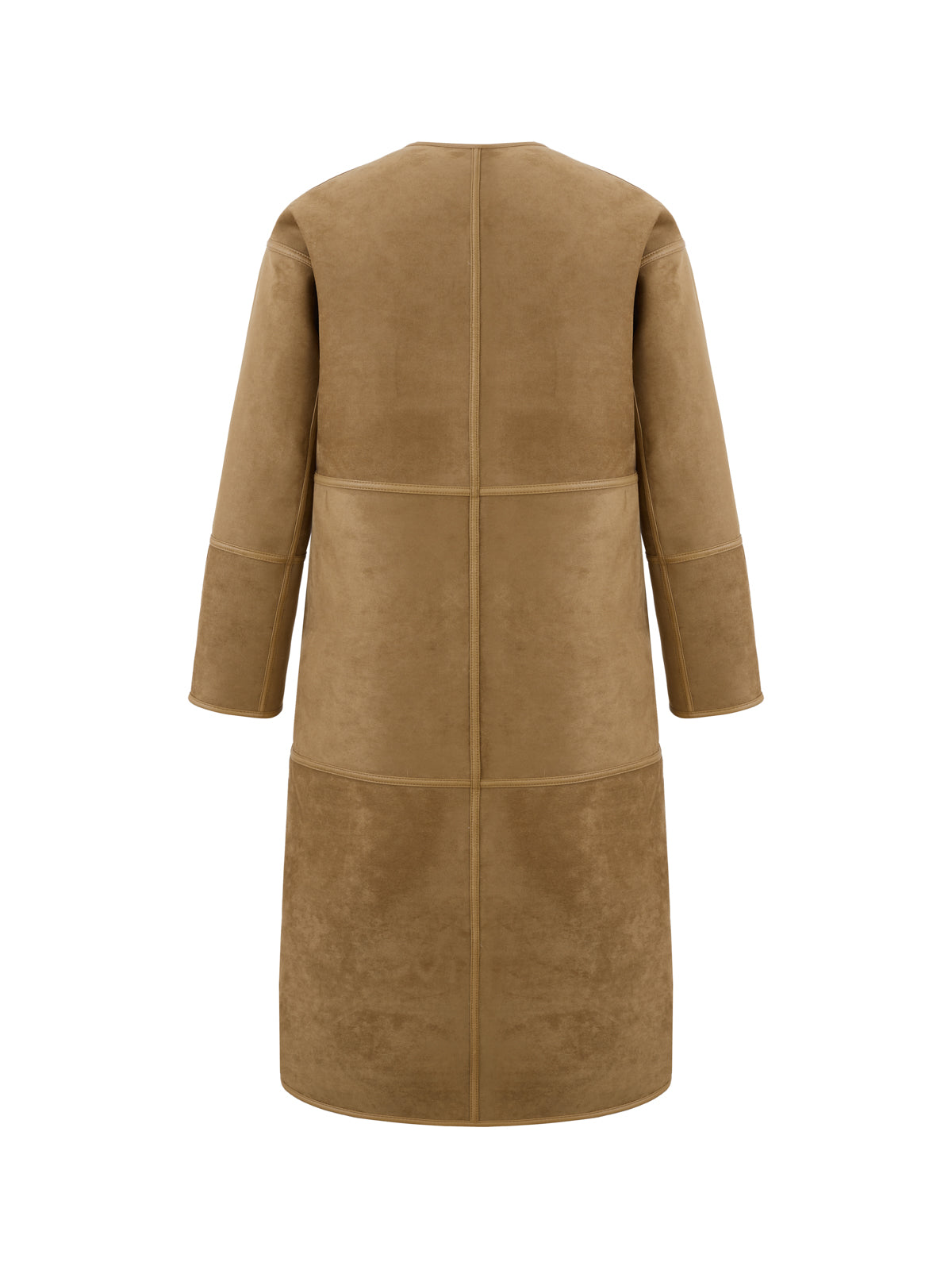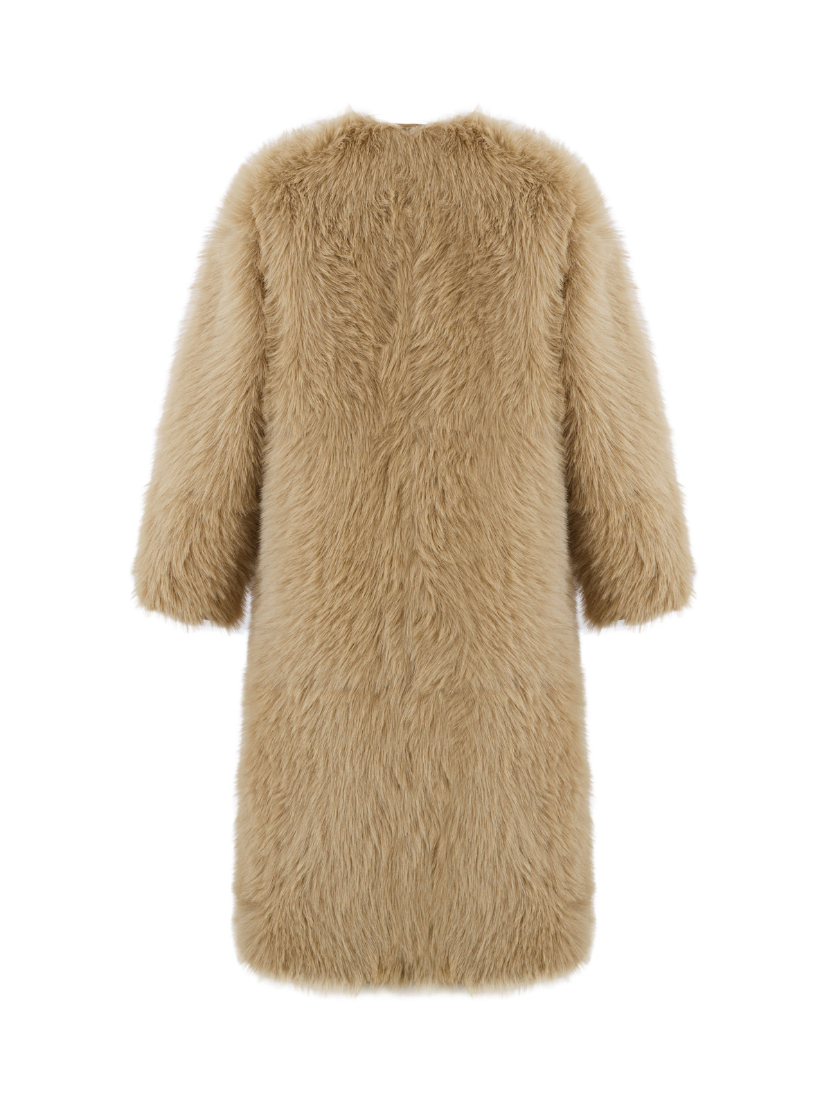 Dettagli e Vestibilità: • La modella indossa una taglia S INT • Composizione: Finta Pelle Scamosciata: 92% Poliestere, 8% Elastan; Pelliccia Sintetica: 100% Poliestere • Colore: Caramel • SKU: BJ20018CH • Made in CN
