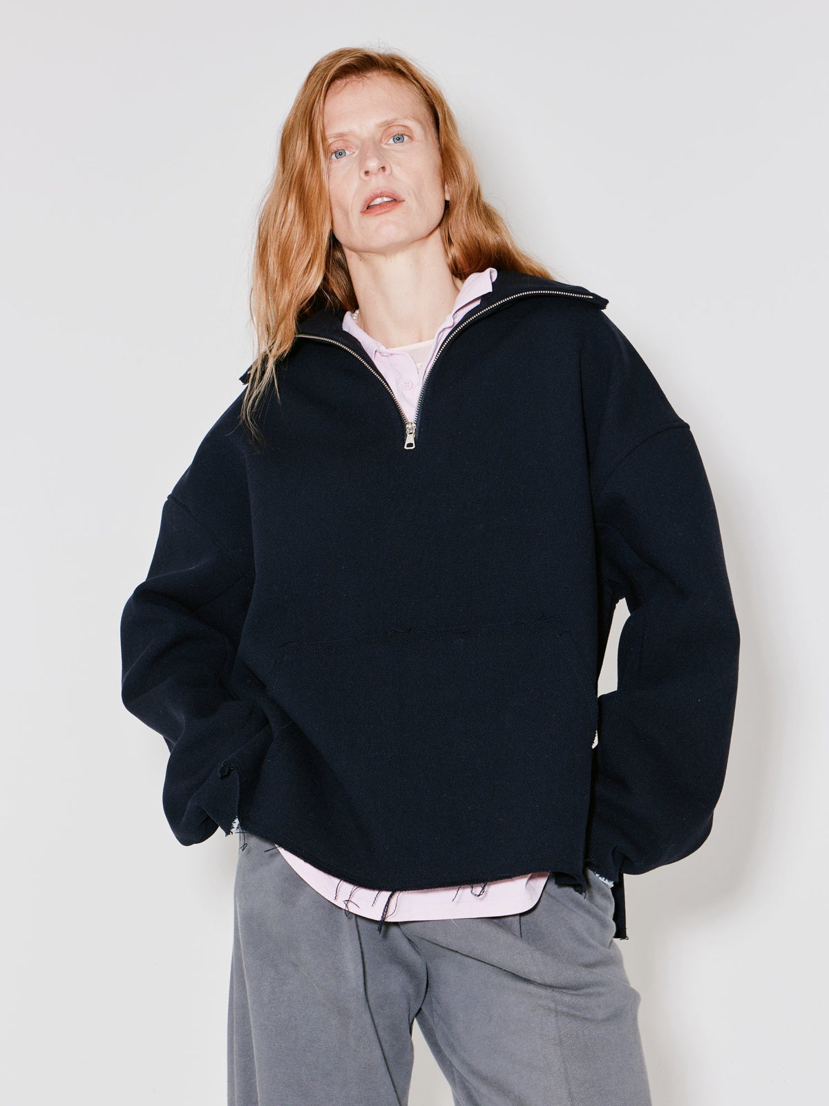 Dettagli e Vestibilità: • La modella indossa una taglia XS INT • Composizione: 75% WV , 25% PA • Colore: Dark Blue • SKU: SOOLD • Made in Bulgaria
