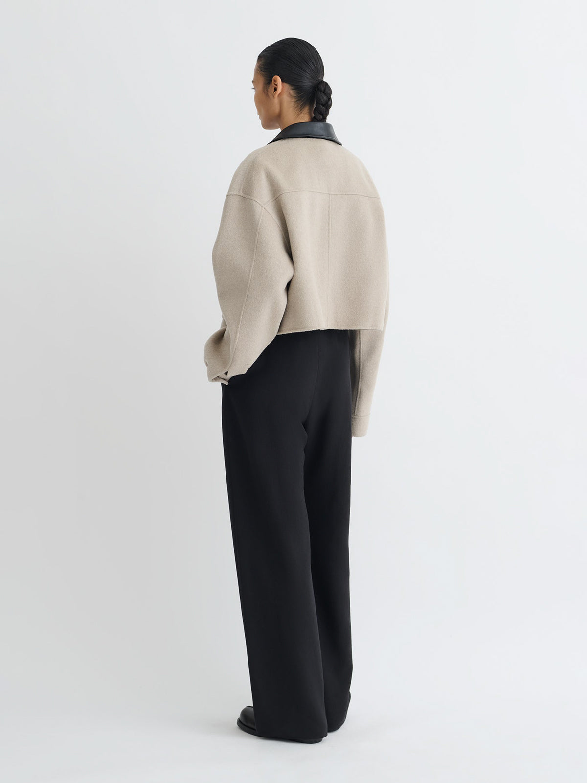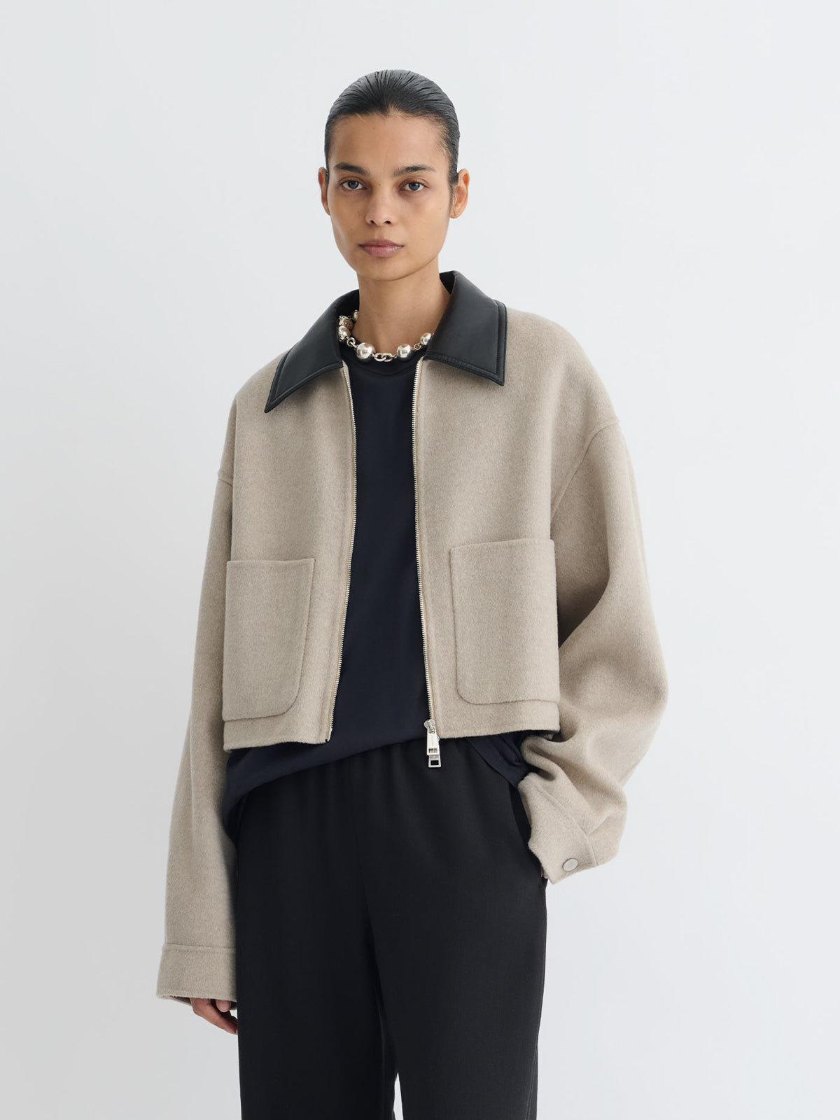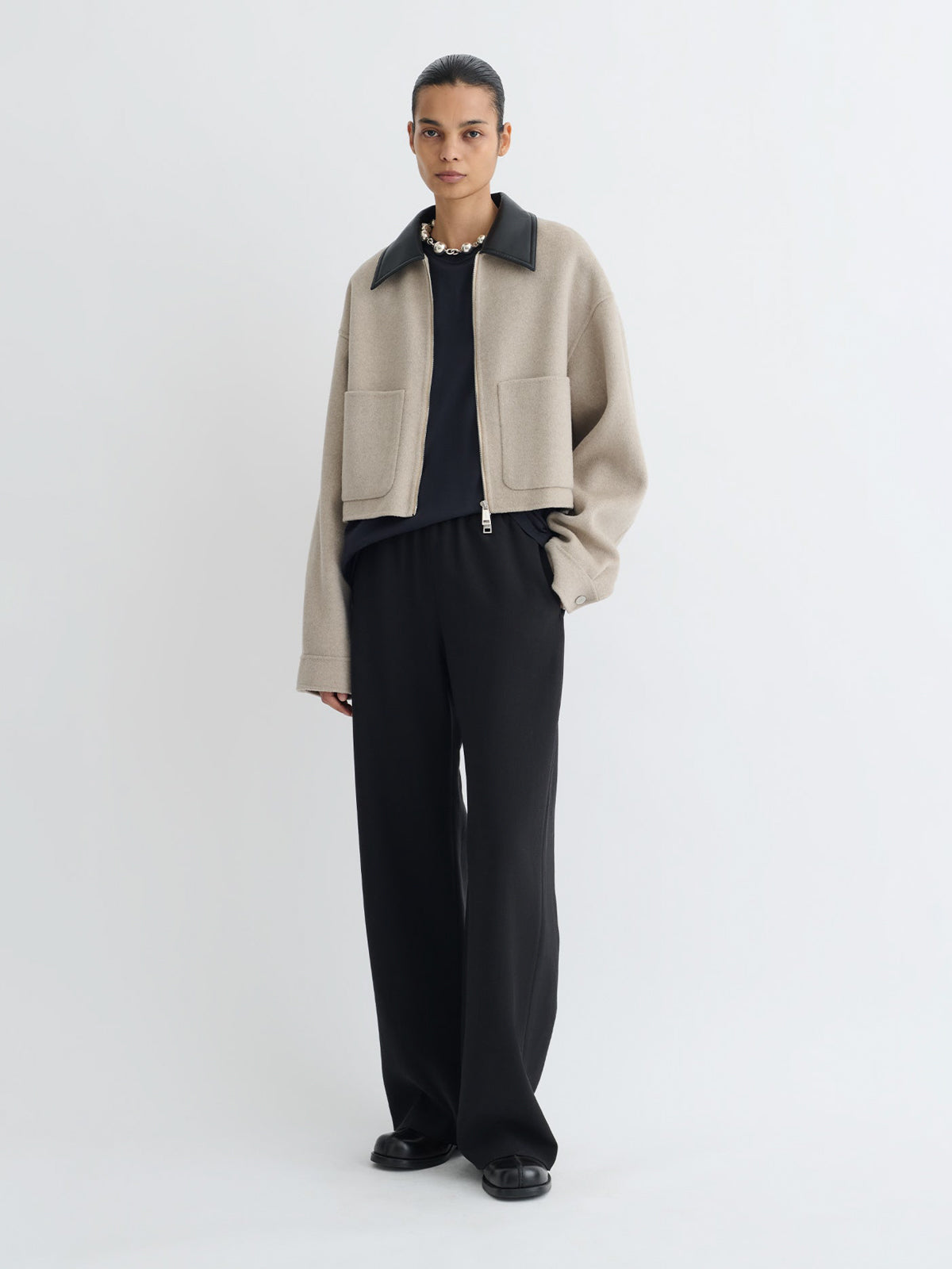 Dettagli e Vestibilità: • La modella indossa una taglia XS INT • Composizione: 90% Lana , 10% Seta • Colore: Stone Black • SKU: NW25PFJK12392SB • Made in CN