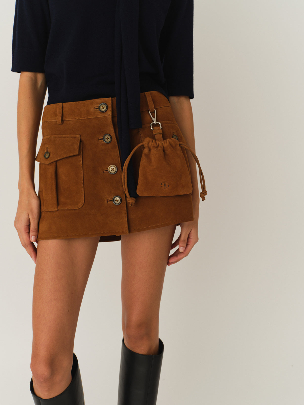 Dettagli e Vestibilità: • La modella indossa una taglia 6 UK • Composizione: 100% Goatskin suede • Colore: Hazelnut • SKU: 21795515 • Made in India