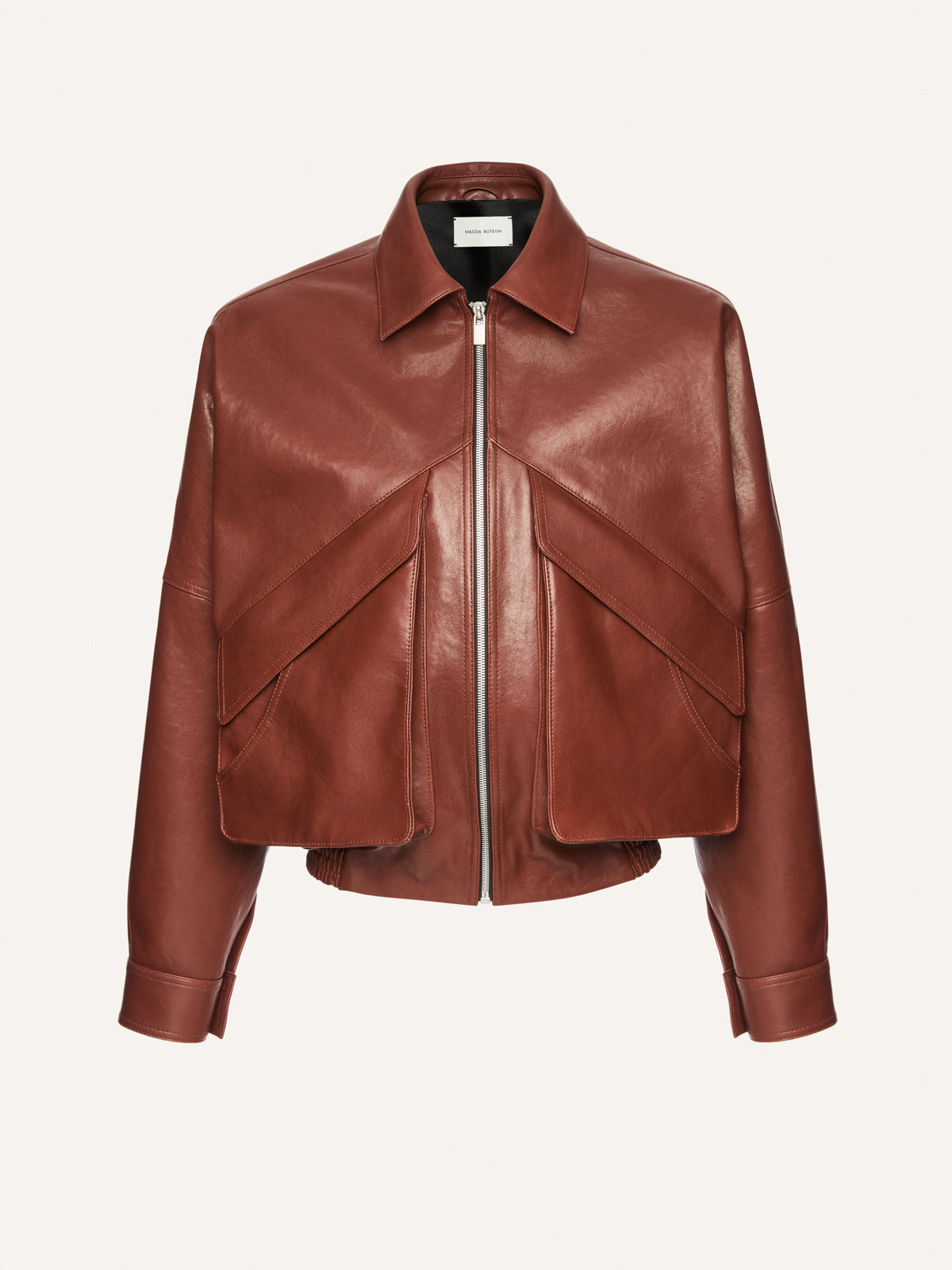 Dettagli e Vestibilità: • La modella indossa una taglia 36 FR • Composizione: 100% Pelle • Colore: Bordeaux • SKU: 353925B • Made in PL